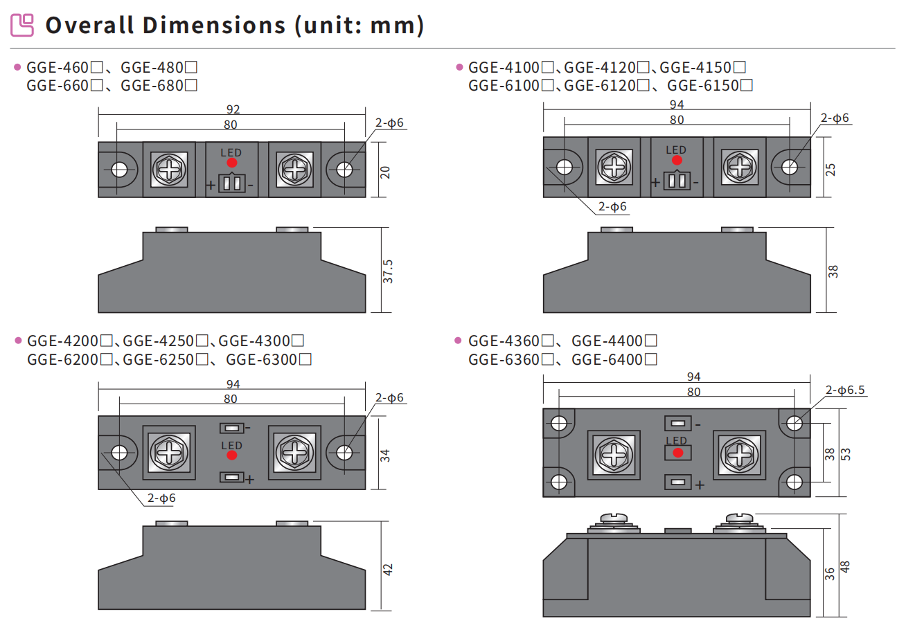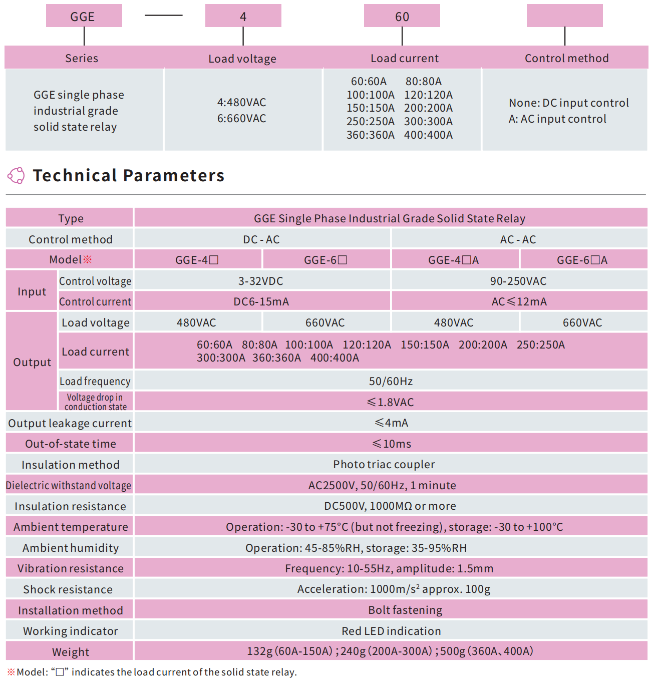 Widely used industrial grade solid state relay with 60-400A output current. Bi-directional thyristor output, zero voltage turn on, zero current turn off. Vacuum + hydrogen-filled protection welding technology. With high working current, surge impact resistance and high reliability. Optical isolation between input and output circuits. Withstand voltage 2500V. LED indicator can indicate its working status. Built-in resistive-capacitive absorption circuit for more absorption effect. Miniaturised and universal size common, can be uniformly installed. Equipped with a safety cover.