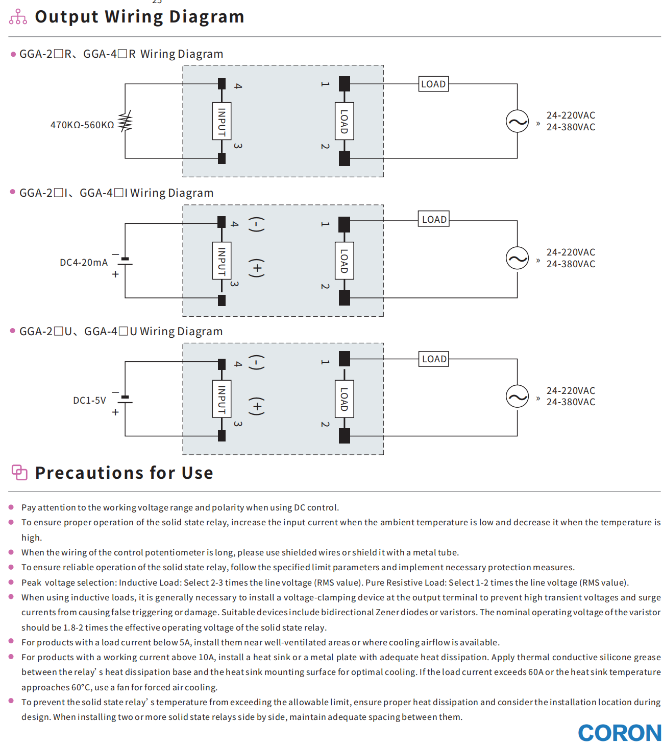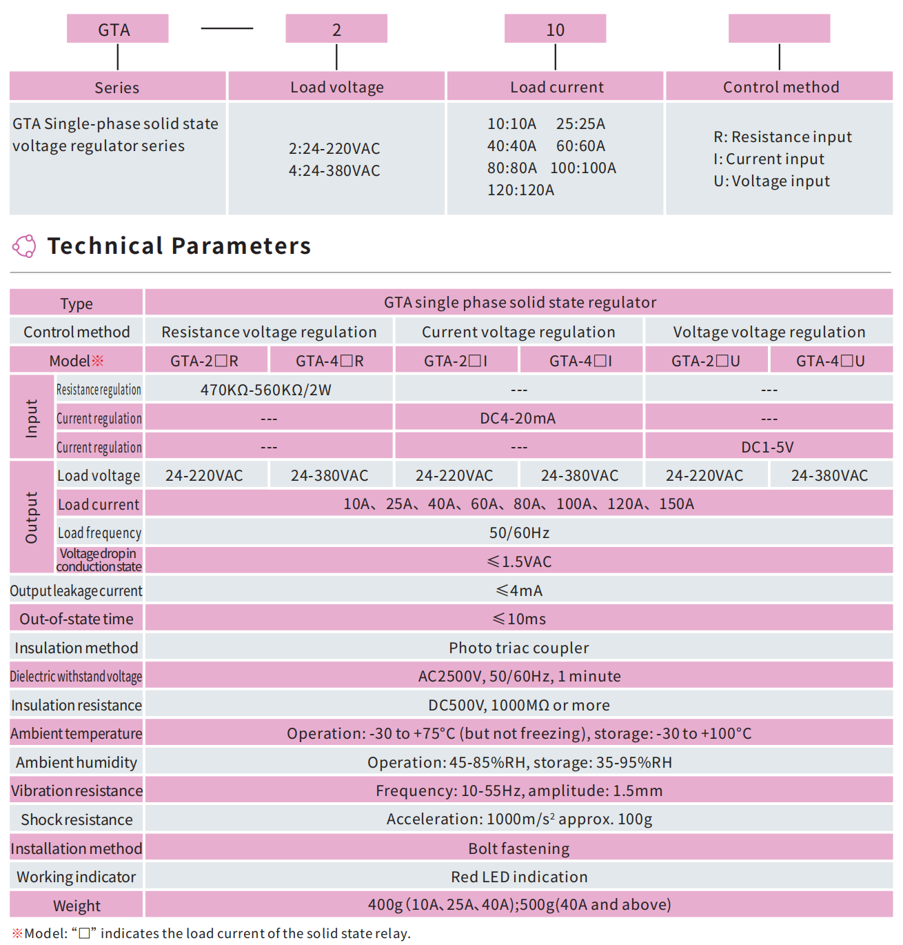 Widely used in 10-120A output current solid state regulator. External potentiometer or 4-20mA, 1-5VDC weak current voltage, to achieve the control of strong electricity. With high working current, surge impact resistance and high reliability. Optical isolation between input and output circuits. Withstand voltage 2500V. LED indicator can indicate its working status. Built-in resistive-capacitive absorption circuit for more absorption effect. Miniaturised and universal size common, can be uniformly installed. Equipped with a safety cover.